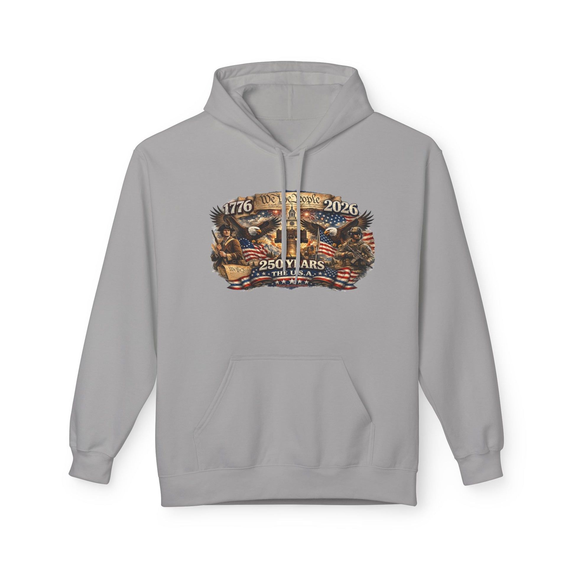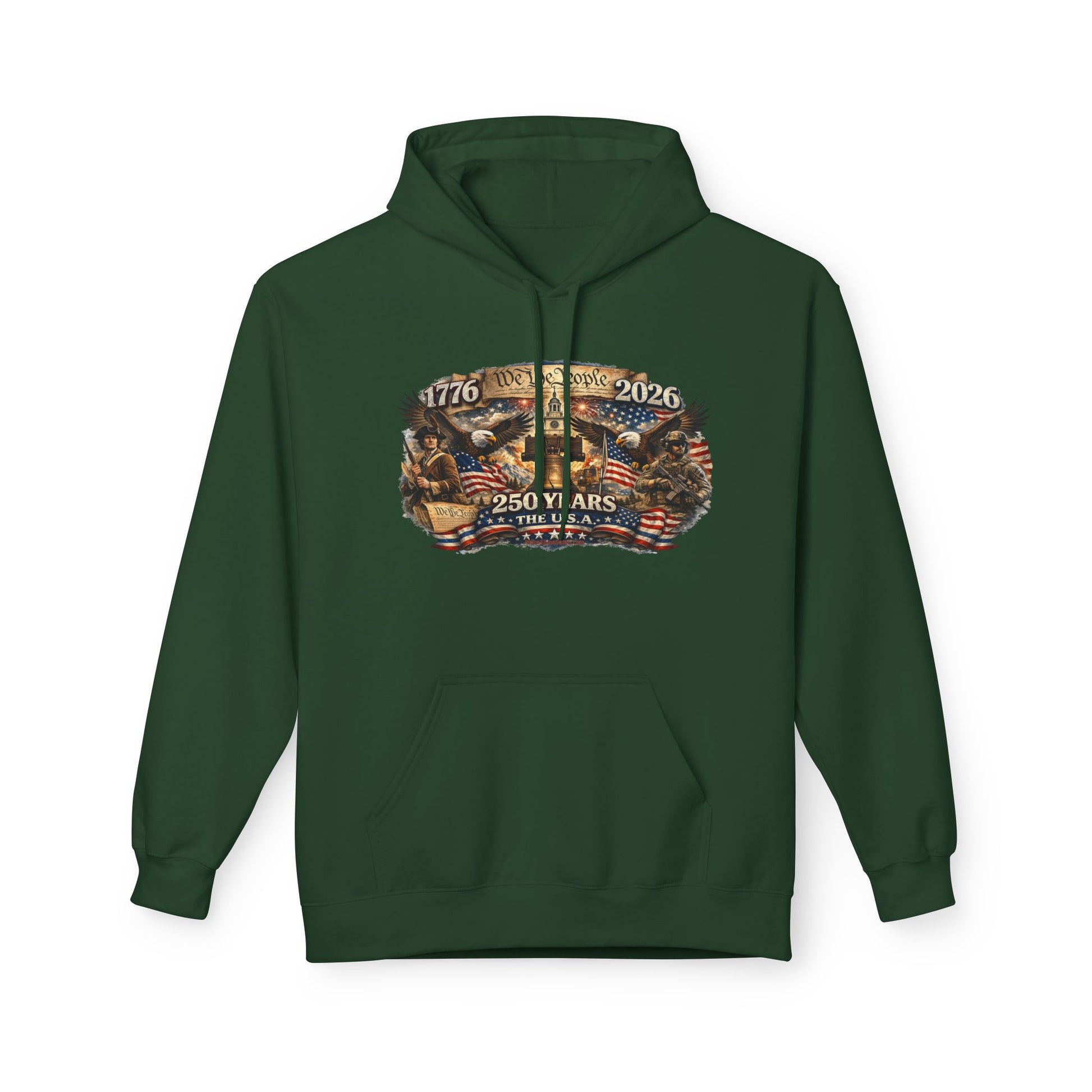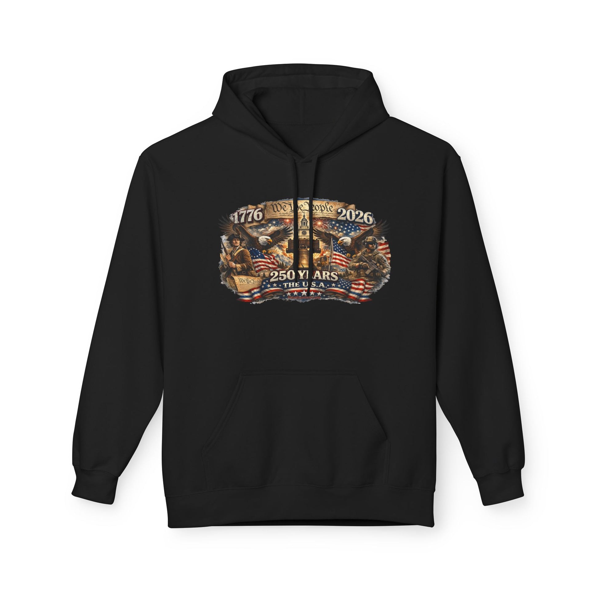 From 1776 to 2026, this piece carries the weight of grit, resolve, and the kind of freedom that didn’t come easy and sure as hell isn’t guaranteed. The artwork tells the story plain and proud — We the People rising off parchment, a Minuteman standing watch on one side, a modern defender on the other, the Liberty Bell right where it belongs, and the eagle still spread-winged in the middle of it all.