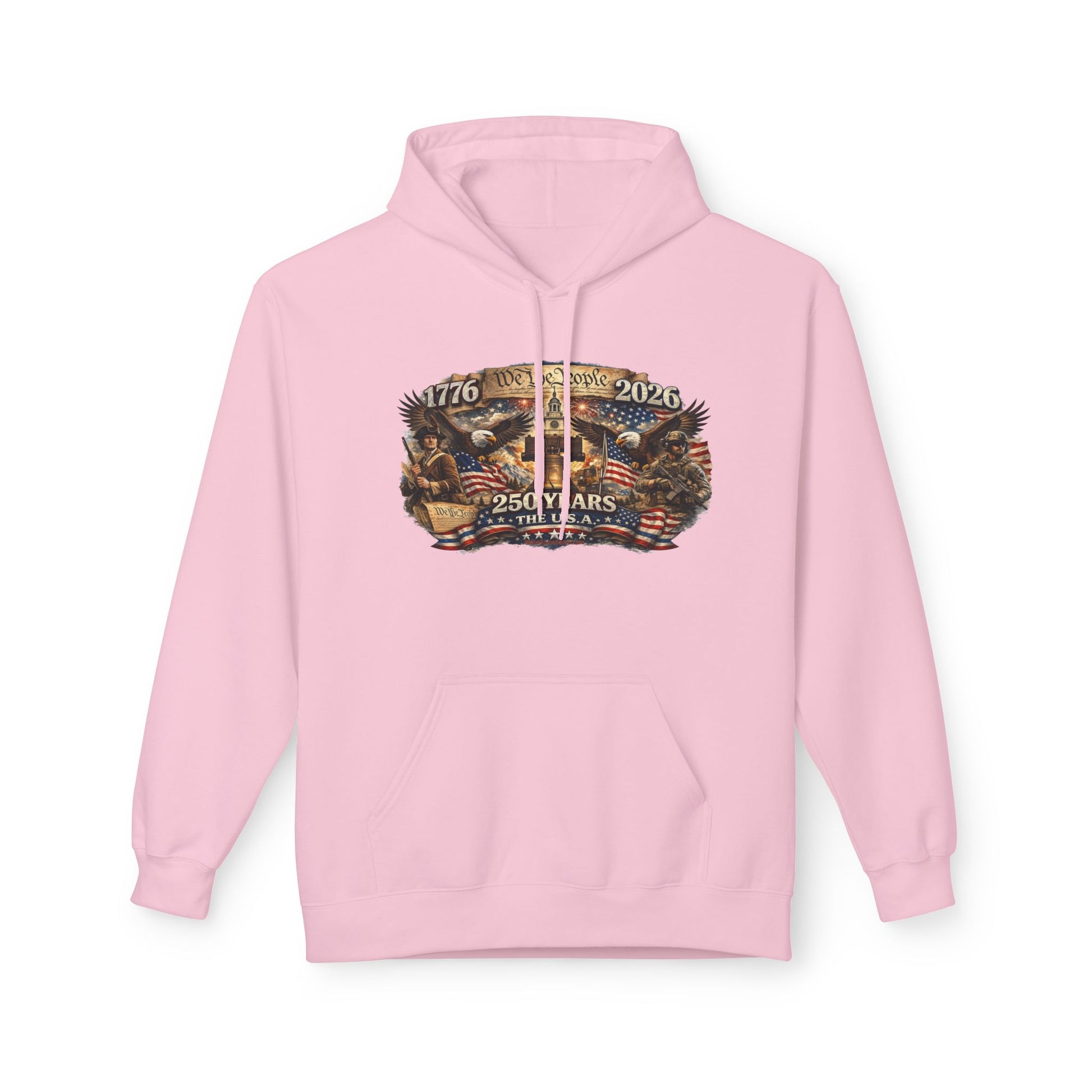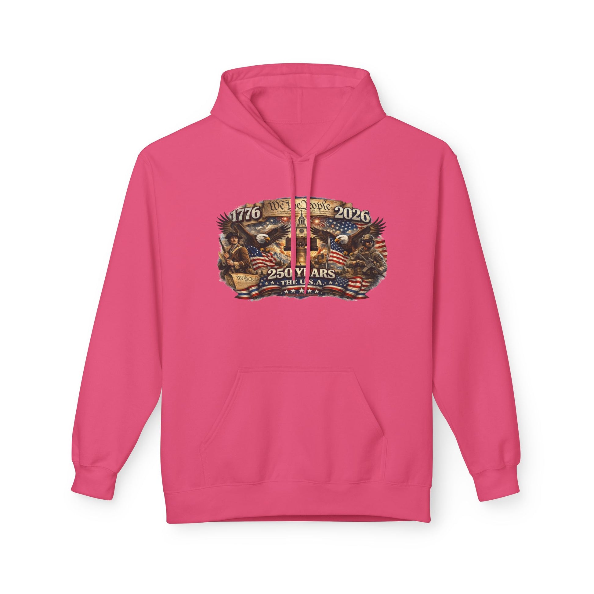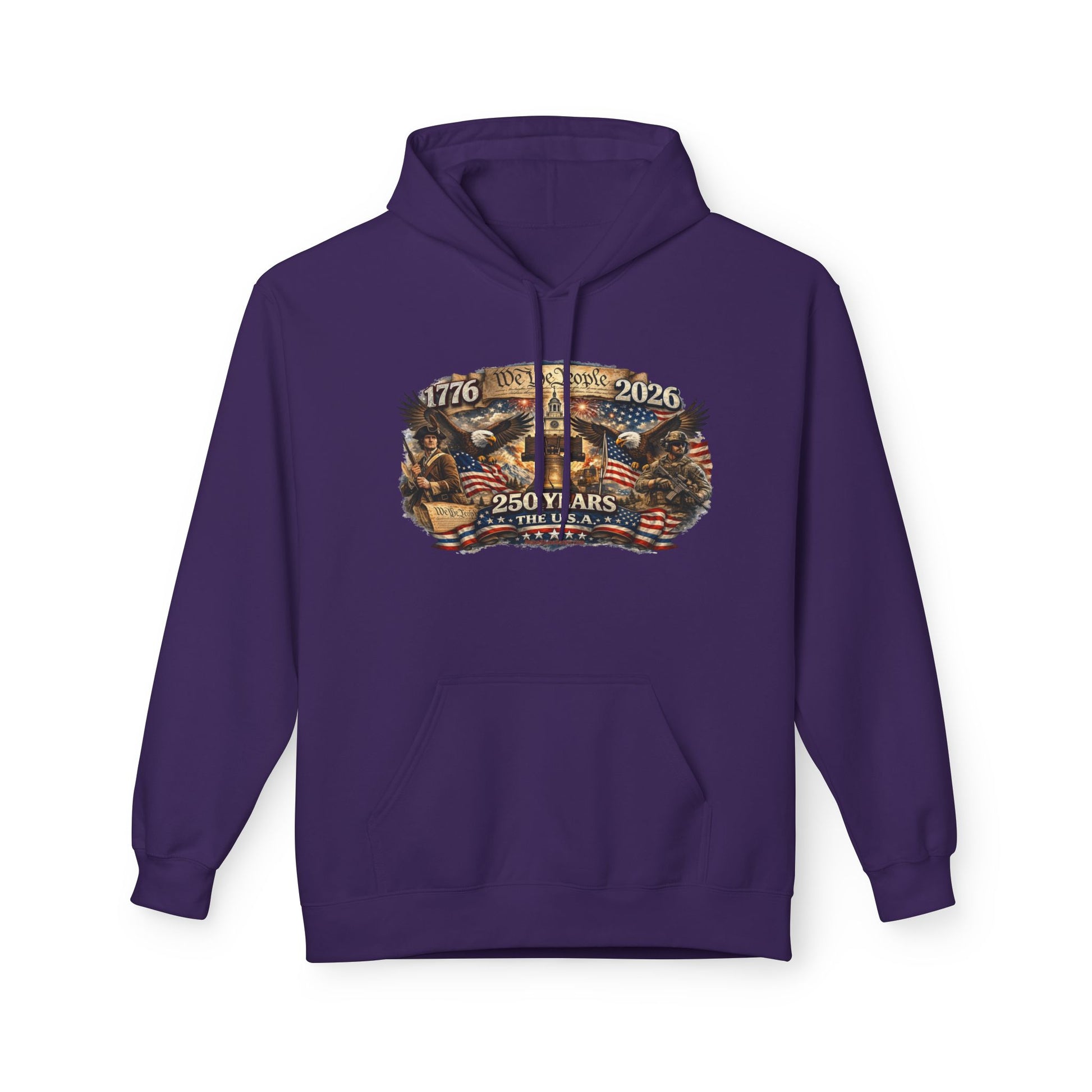 From 1776 to 2026, this piece carries the weight of grit, resolve, and the kind of freedom that didn’t come easy and sure as hell isn’t guaranteed. The artwork tells the story plain and proud — We the People rising off parchment, a Minuteman standing watch on one side, a modern defender on the other, the Liberty Bell right where it belongs, and the eagle still spread-winged in the middle of it all.